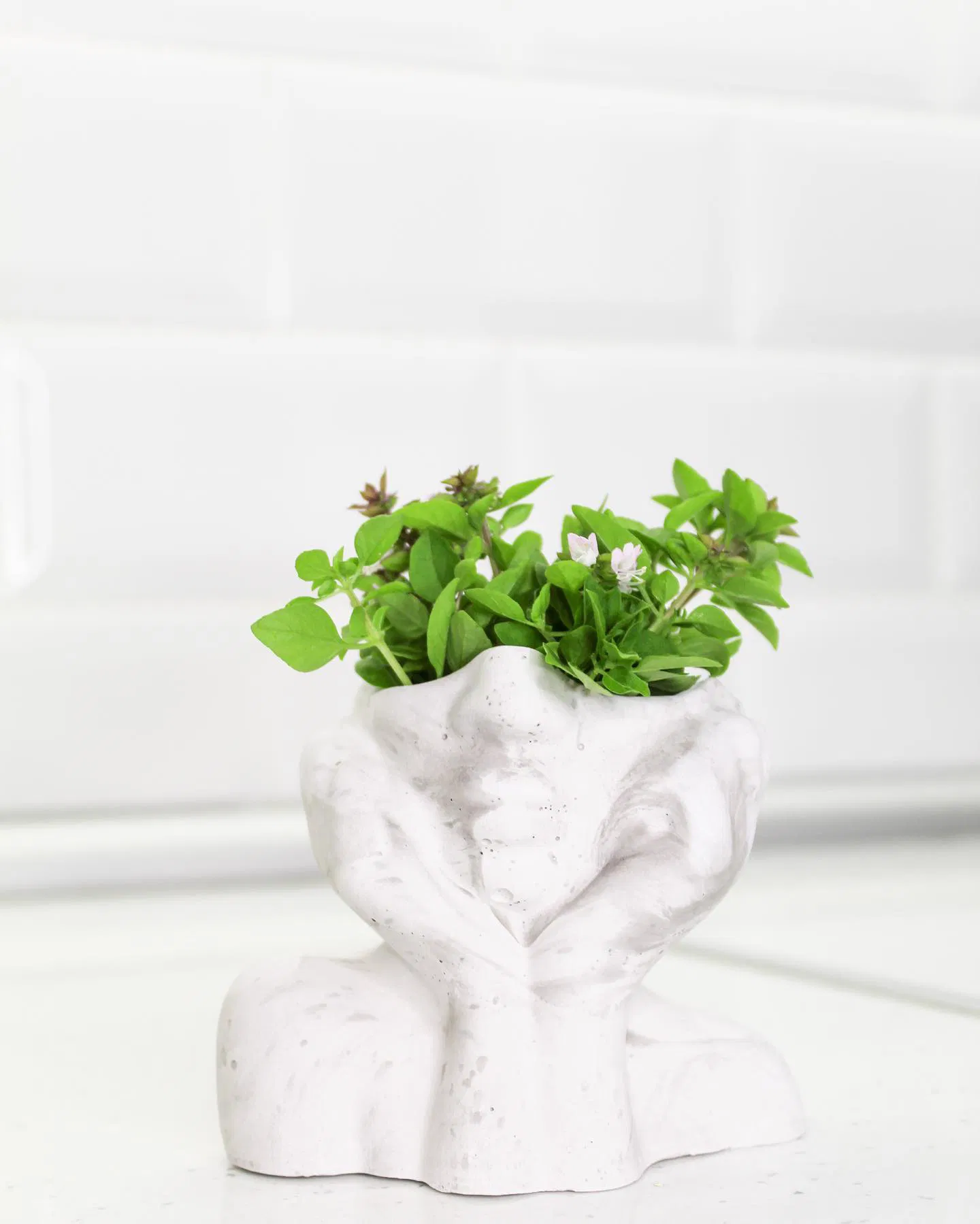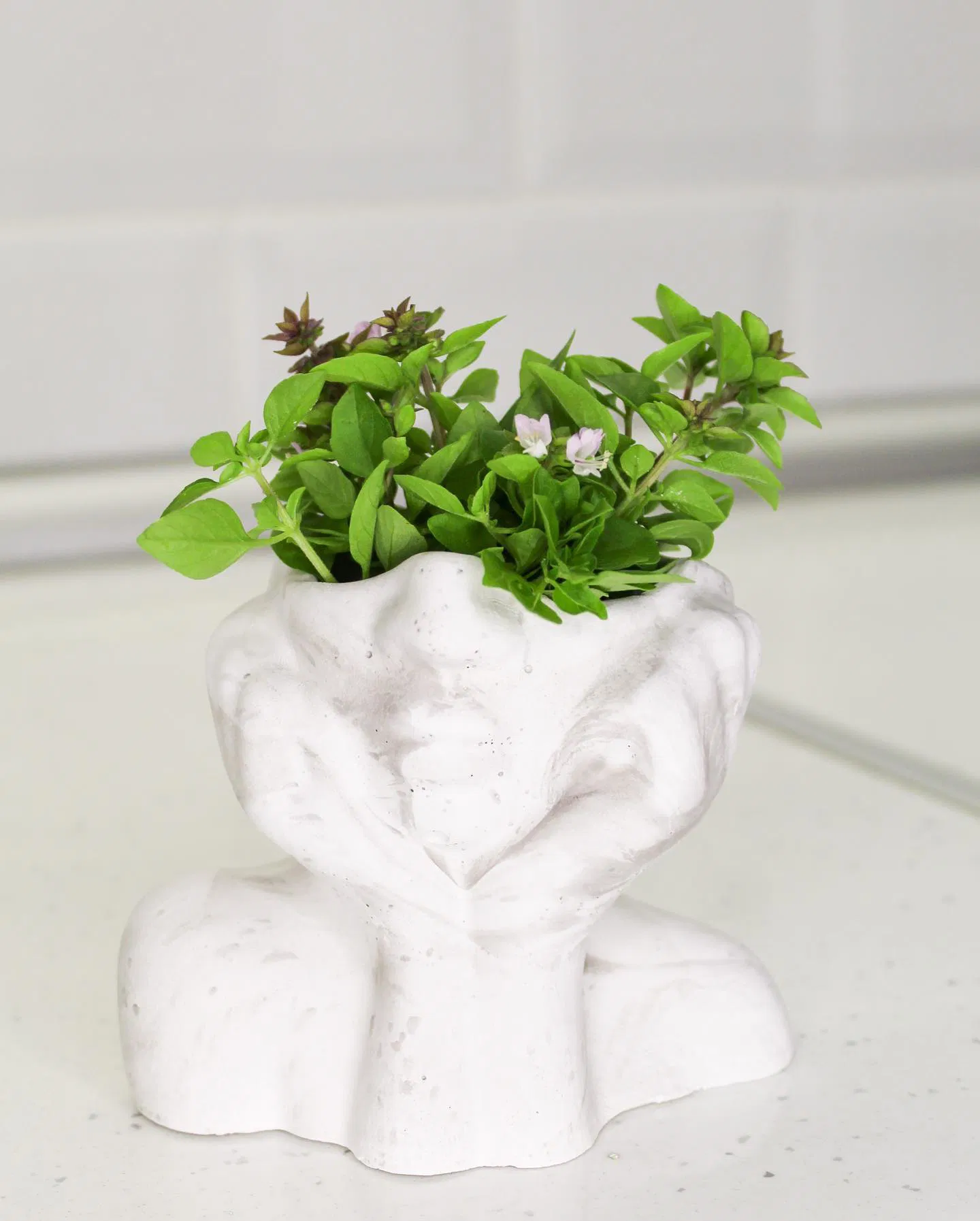 Αγαλματίδιο κοπέλας με τα χέρια στο πρόσωπο από καλλιτεχνικό γύψο. Μπορεί να διακοσμηθεί σκέτο, είτε με λουλούδια. Υπάρχει οπή στο εσωτερικό! Βγαίνει και με χρυσόσκονη.